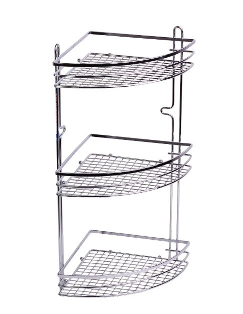 Полиця для ванної на три яруси кріпиться до стіни на саморізі. Кріплення йдуть у комплекті.